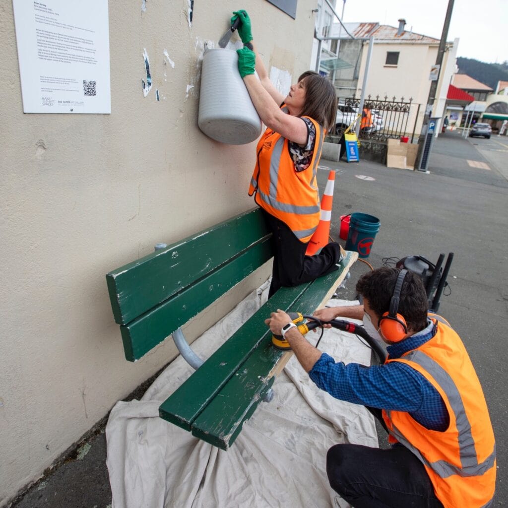 We even gave the public seat a sanding down and repaint, and painted over the graffiti behind it.