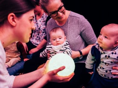 Up and Away is a playful and gentle theatrical performance created exclusively for babies. Two performers use theatre, play and live music in a 30min performance.