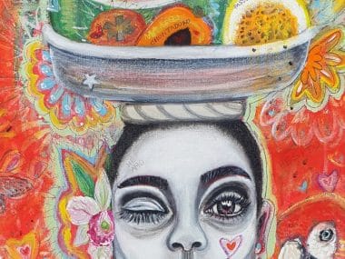Santalma uses her artwork to reflect a positive view of her homeland of Colombia. She uses the passion of her country as a source of inspiration, influenced by its colours, joy, cultural contrasts, biodiversity, flavours and rhythms that resulted from the miscegenation of Indigenous, Spanish and African heritage.